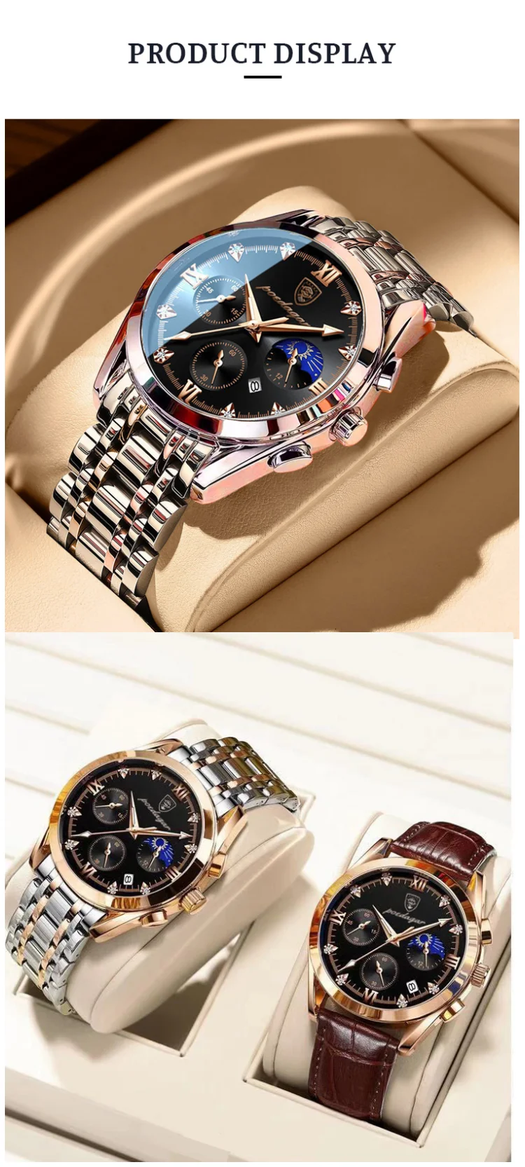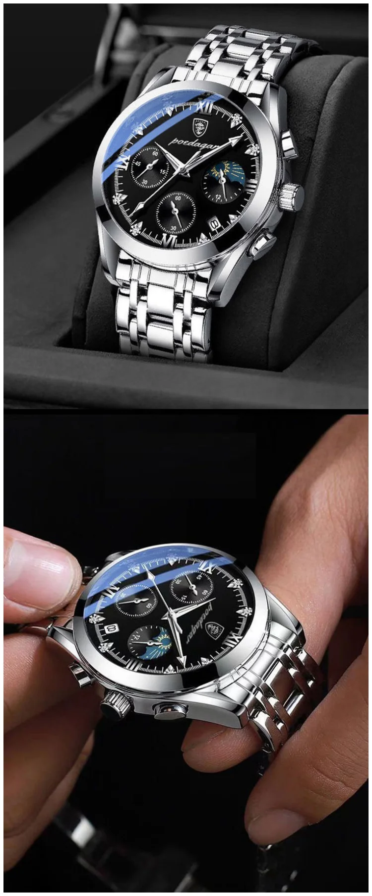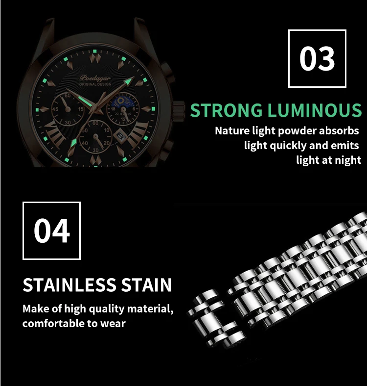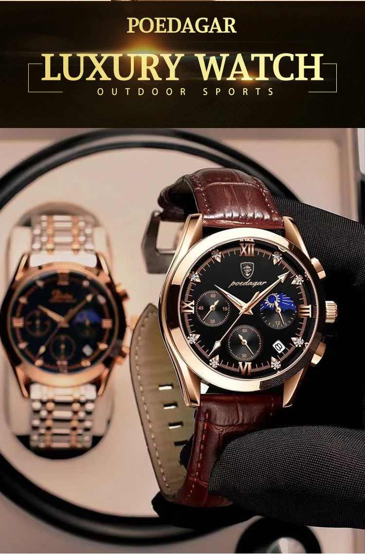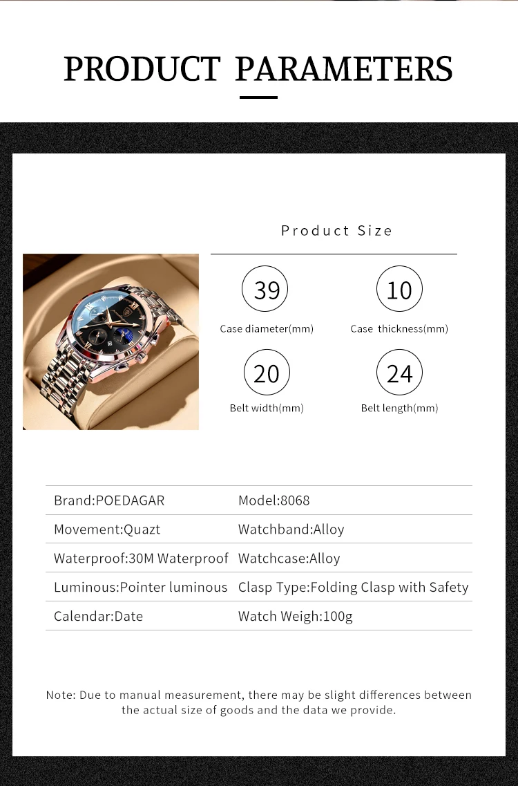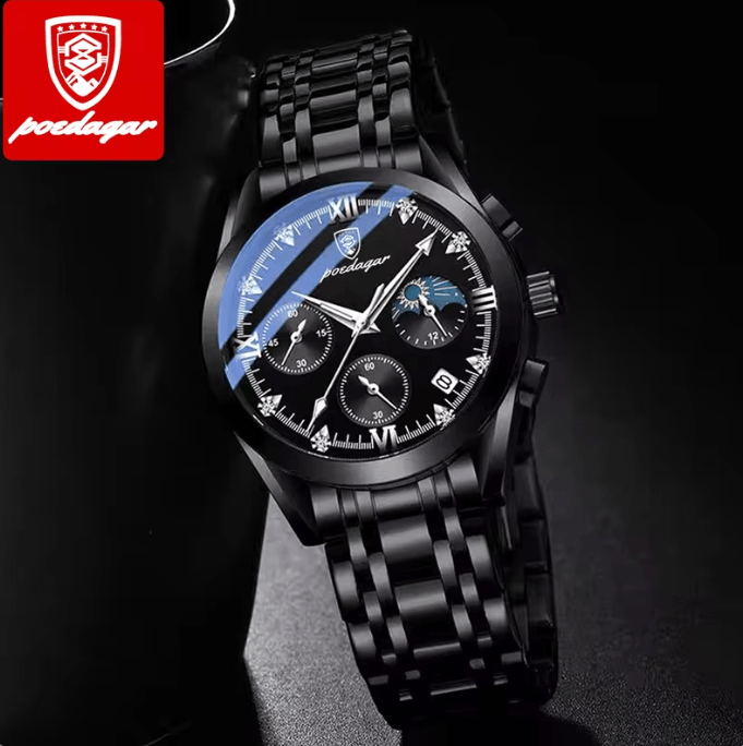 POEDAGAR 8068 New Fashion Men’s Watch Stainless Steel Waterproof Luminous Sport Date Quartz Business Wrist Watch Luxury For Men